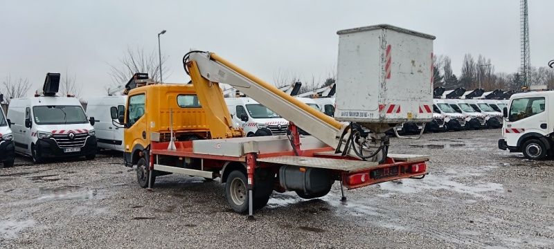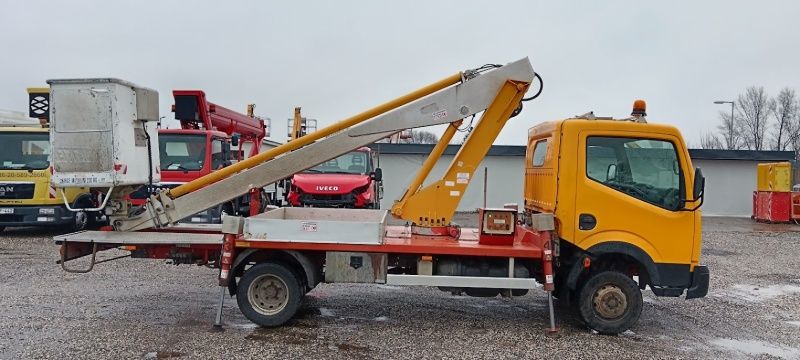 Nissan Cabstar Multitel 160 ALU DS kosaras autó 16 m gémkinyúlással eladó. Azonnal munkára fogható! Magyar papírokkal és friss emelővizsgával!