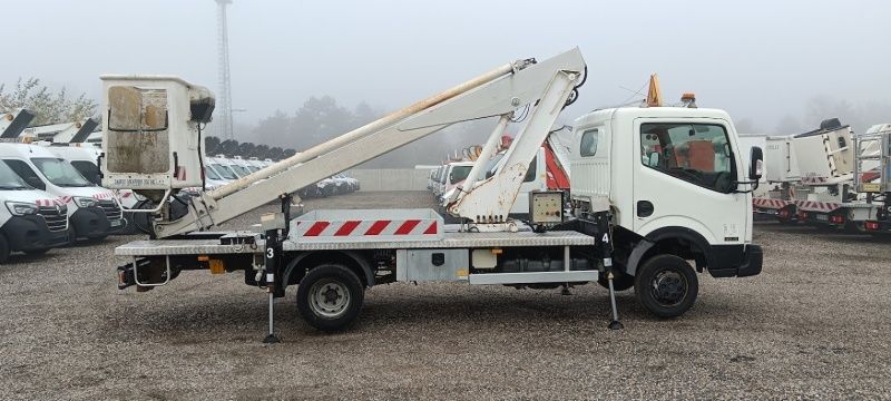 Nissan Cabstar Multitel 160 ALU DS kosaras autó 16 m gémkinyúlással eladó. Azonnal munkára fogható! Magyar papírokkal és friss emelővizsgával!